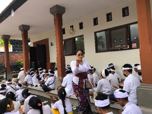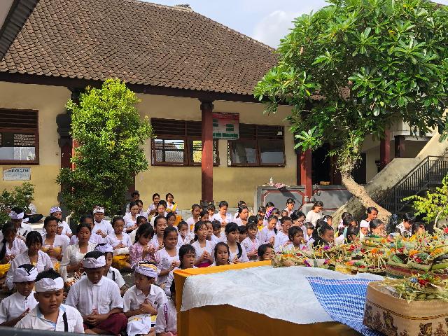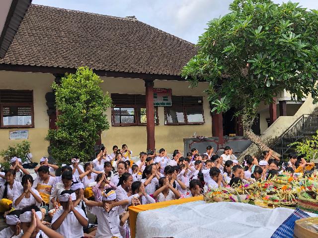Warga sekolah melaksanakan persembahyangan bersama | Warga sekolah melaksanakan persembahyangan bersama |